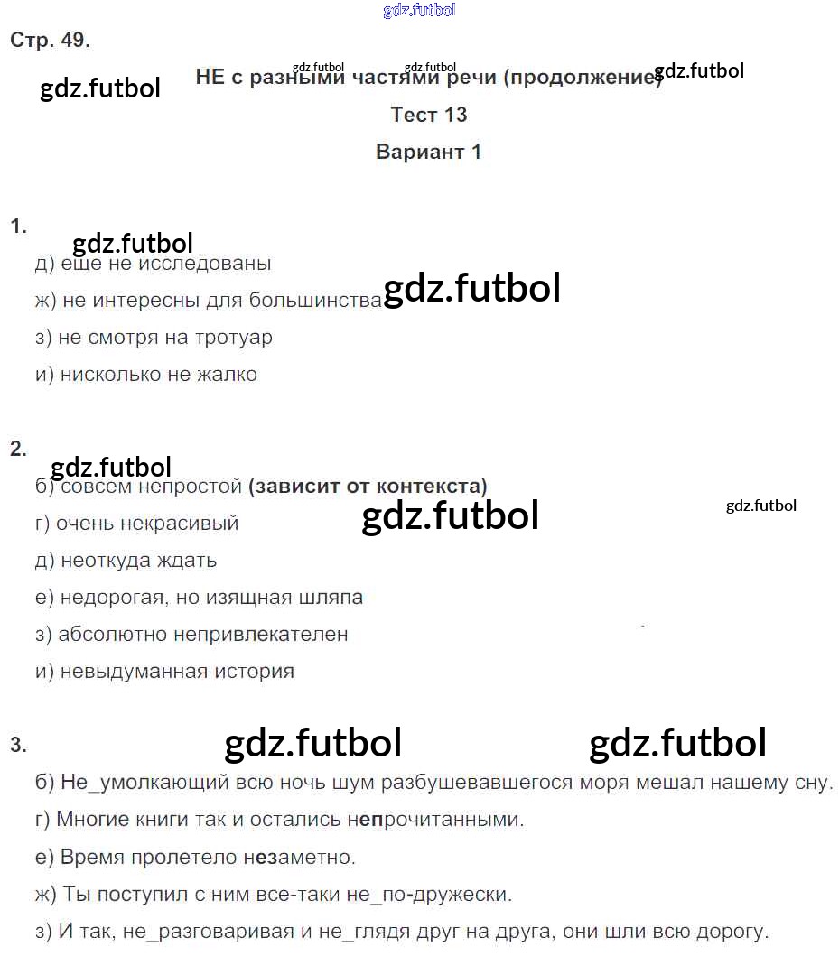 Готовые домашние задания по Русскому языку за 7 класс Книгина Тесты 2012 ФГОС - Часть 2. Страницы 49