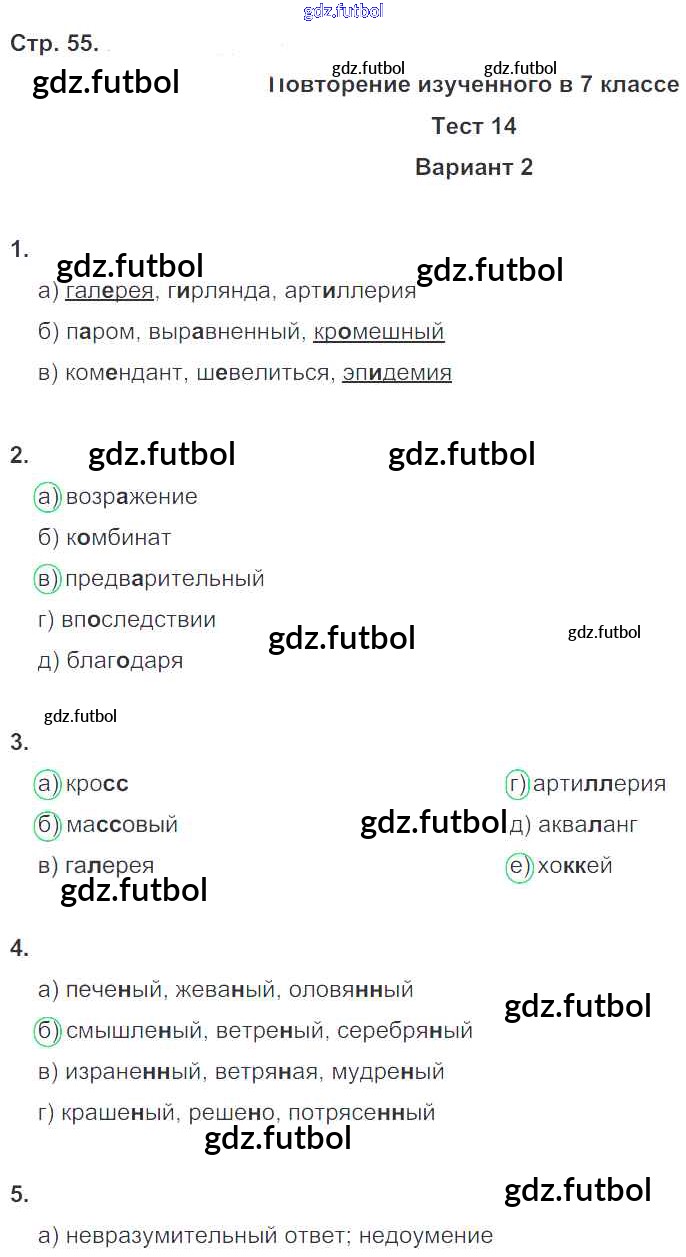 Готовые домашние задания по Русскому языку за 7 класс Книгина Тесты 2012 ФГОС - Часть 2. Страницы 55