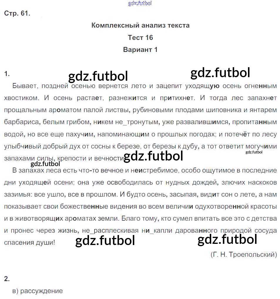 Готовые домашние задания по Русскому языку за 7 класс Книгина Тесты 2012 ФГОС - Часть 2. Страницы 61