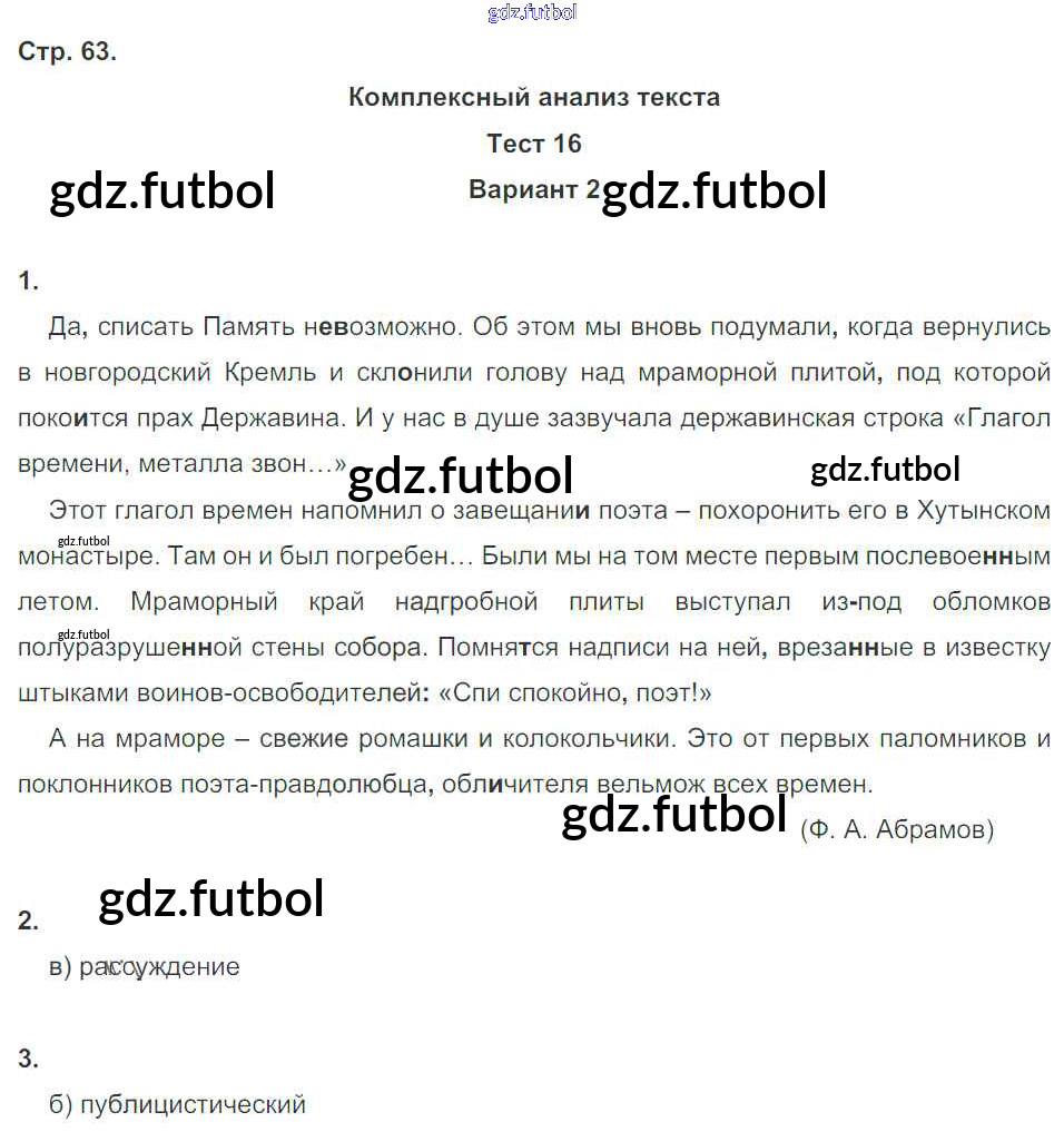 Готовые домашние задания по Русскому языку за 7 класс Книгина Тесты 2012 ФГОС - Часть 2. Страницы 63