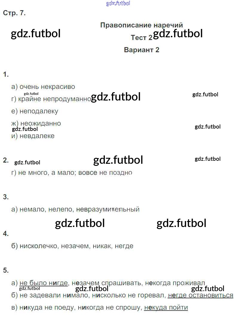 Готовые домашние задания по Русскому языку за 7 класс Книгина Тесты 2012 ФГОС - Часть 2. Страницы 7