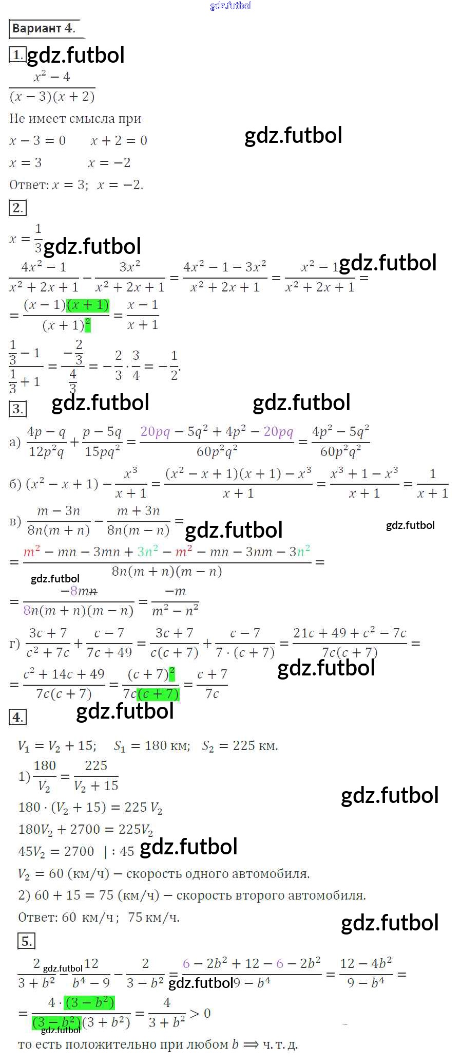 Готовые домашние задания по Алгебре за 8 класс Александрова Контрольные работы УМК Базовый уровень 2016 ФГОС - КР-1. Варианты 4
