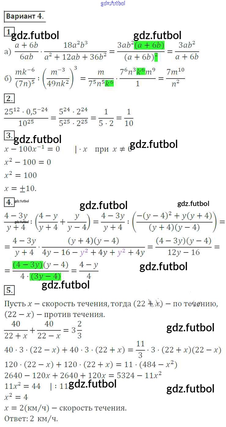 Готовые домашние задания по Алгебре за 8 класс Александрова Контрольные работы УМК Базовый уровень 2016 ФГОС - КР-2. Варианты 4