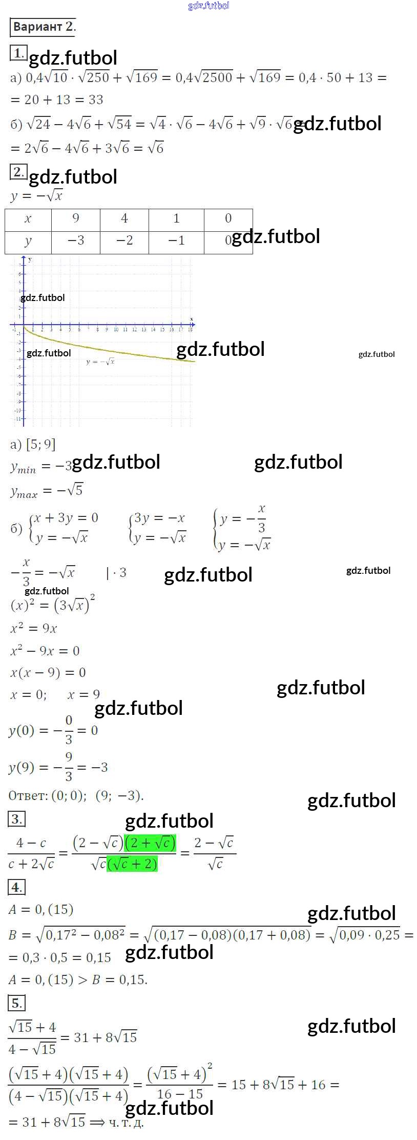 Готовые домашние задания по Алгебре за 8 класс Александрова Контрольные работы УМК Базовый уровень 2016 ФГОС - КР-3. Варианты 2