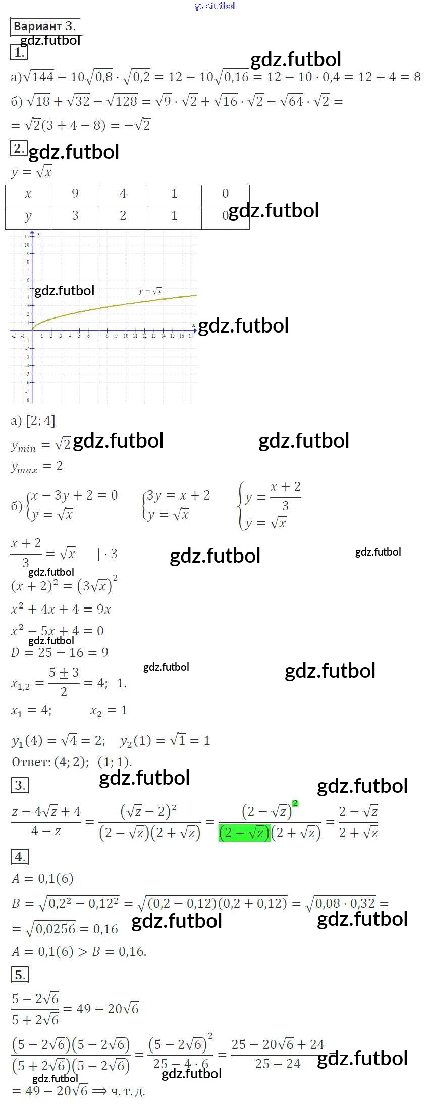 Готовые домашние задания по Алгебре за 8 класс Александрова Контрольные работы УМК Базовый уровень 2016 ФГОС - КР-3. Варианты 3