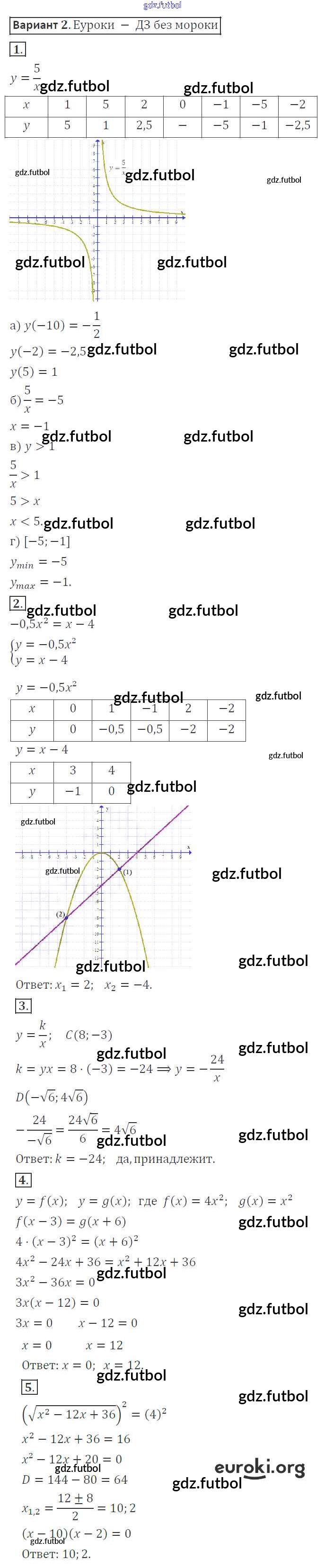 Готовые домашние задания по Алгебре за 8 класс Александрова Контрольные работы УМК Базовый уровень 2016 ФГОС - КР-4. Варианты 2