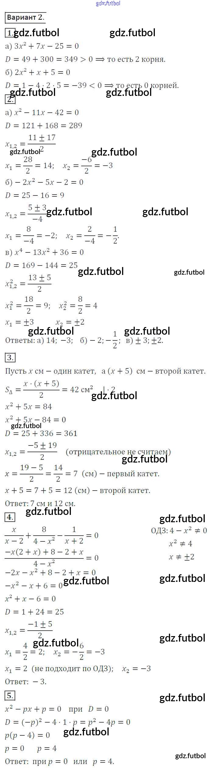 Готовые домашние задания по Алгебре за 8 класс Александрова Контрольные работы УМК Базовый уровень 2016 ФГОС - КР-6. Варианты 2