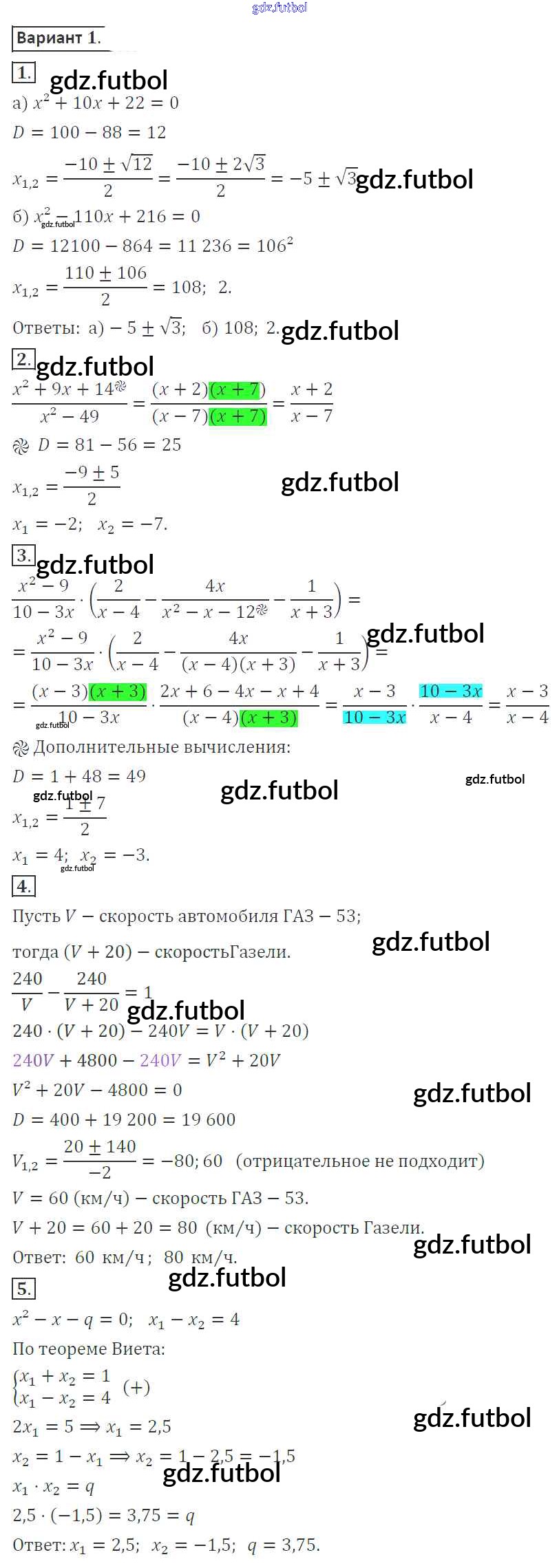 Готовые домашние задания по Алгебре за 8 класс Александрова Контрольные работы УМК Базовый уровень 2016 ФГОС - КР-7. Варианты 1