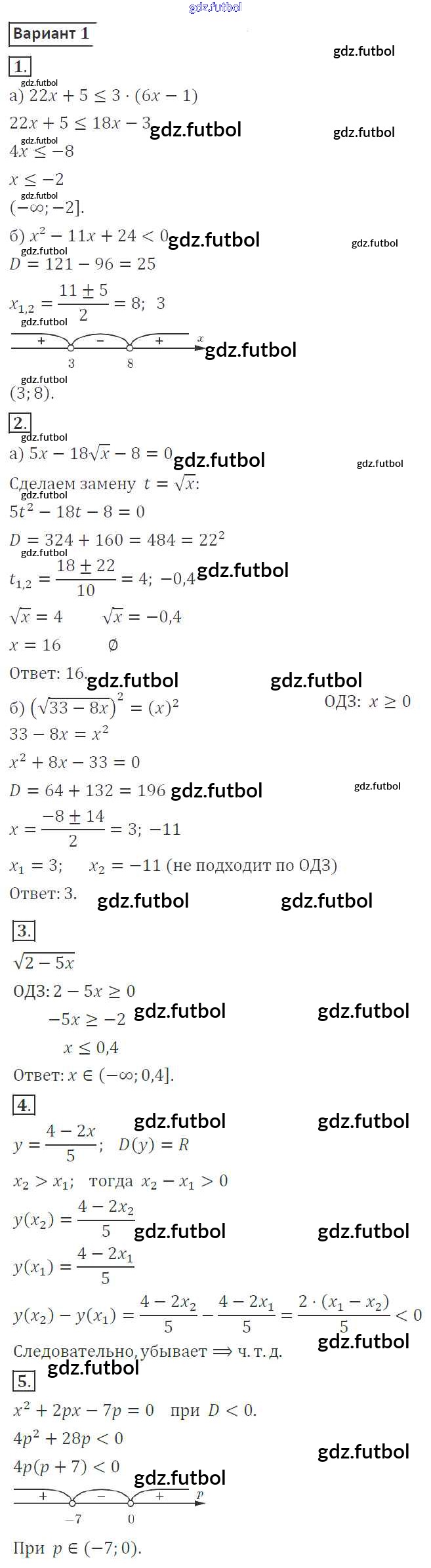 Готовые домашние задания по Алгебре за 8 класс Александрова Контрольные работы УМК Базовый уровень 2016 ФГОС - КР-8. Варианты 1