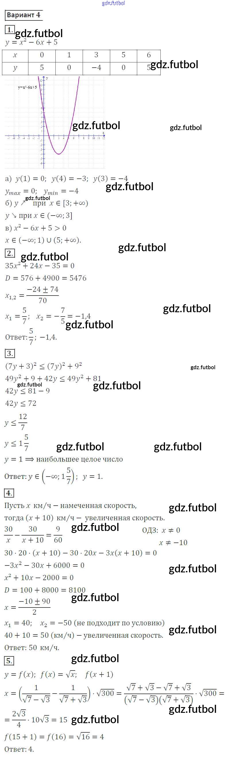 Готовые домашние задания по Алгебре за 8 класс Александрова Контрольные работы УМК Базовый уровень 2016 ФГОС - Итоговые контрольные работы. Варианты 4
