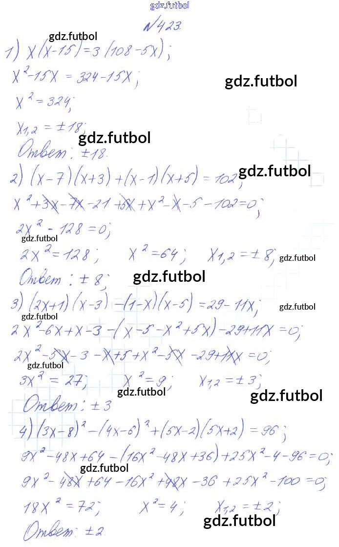 Готовые домашние задания по Алгебре за 8 класс Алимов Учебник 2014 - Упражнения 423
