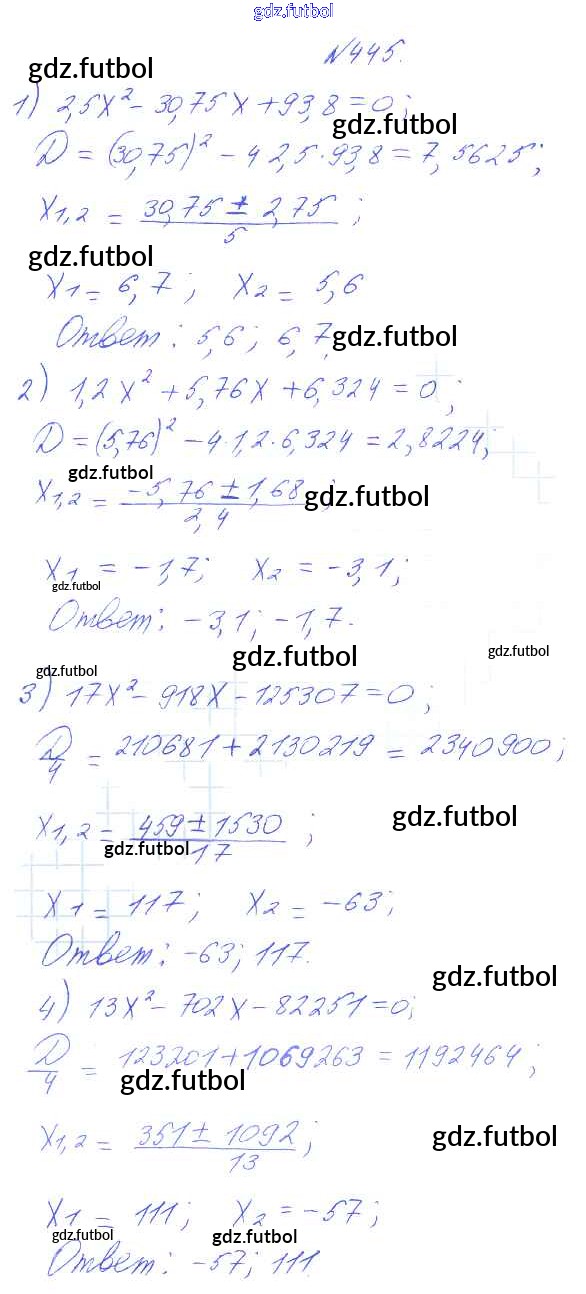 Готовые домашние задания по Алгебре за 8 класс Алимов Учебник 2014 - Упражнения 445