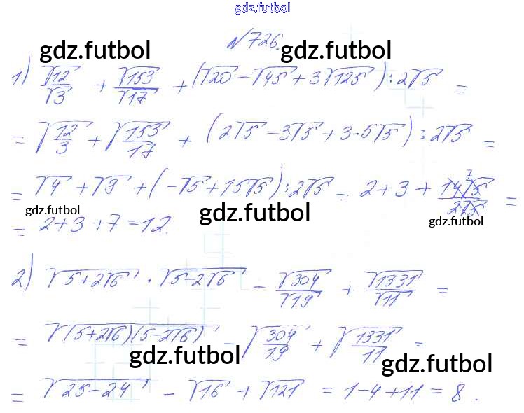 Готовые домашние задания по Алгебре за 8 класс Алимов Учебник 2014 - Упражнения 726