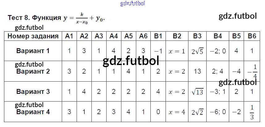 Готовые решения задач (ГДЗ) по Алгебре восьмой класс Чулков, Струков Тематические тесты МГУ - школе 2012 ФГОС - Тесты 8 доступны для различных учебных материалов. У нас вы сможете найти авторские решения для всех пособий, предназначенных для школьников. Не секрет, что в настоящее время многие школьники прибегают к использованию готовых решебников, ведь они содержат подробные ответы для каждого упражнения, представленного в учебнике.