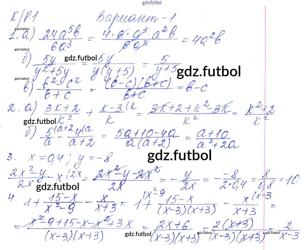 Готовые домашние задания по Алгебре за 8 класс Дудницын Контрольные работы УМК 2010 ФГОС - КР-1. Сумма и разность дробей. Варианты 1