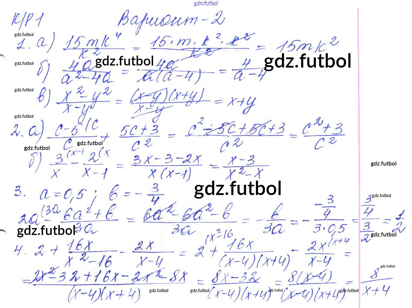Готовые домашние задания по Алгебре за 8 класс Дудницын Контрольные работы УМК 2010 ФГОС - КР-1. Сумма и разность дробей. Варианты 2