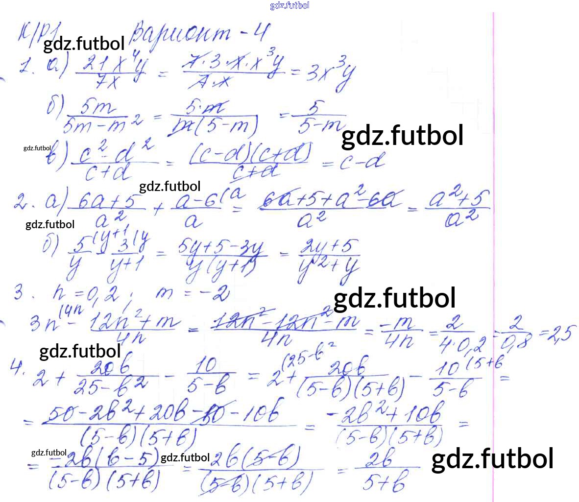 Готовые домашние задания по Алгебре за 8 класс Дудницын Контрольные работы УМК 2010 ФГОС - КР-1. Сумма и разность дробей. Варианты 4