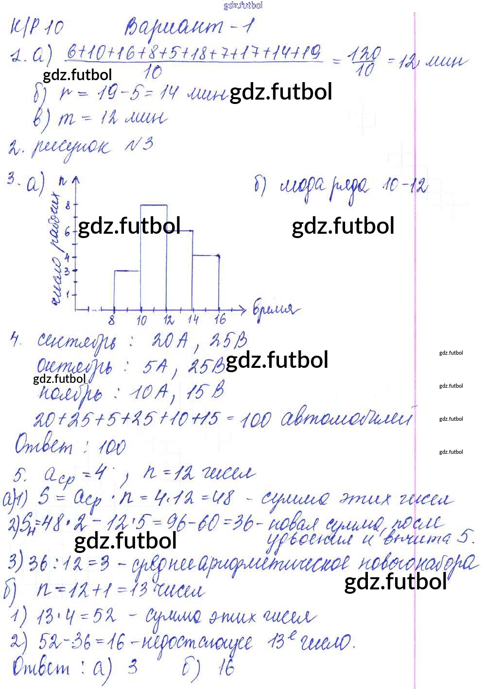 Готовые домашние задания по Алгебре за 8 класс Дудницын Контрольные работы УМК 2010 ФГОС - КР-10. Элементы статистики. Варианты 1