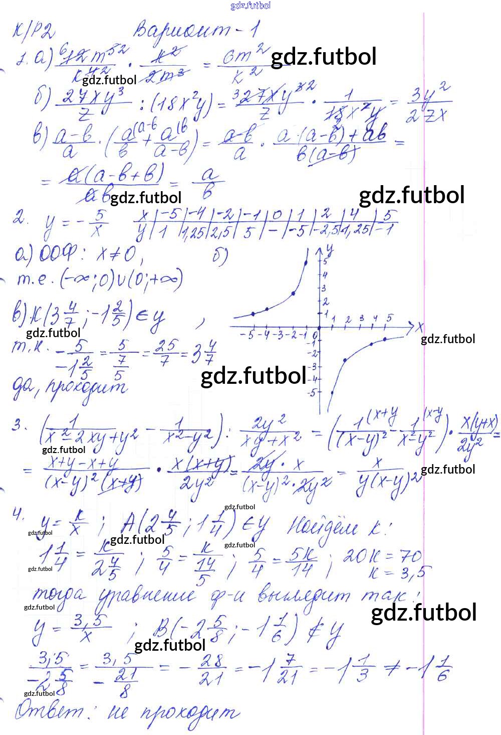 Готовые домашние задания по Алгебре за 8 класс Дудницын Контрольные работы УМК 2010 ФГОС - КР-2. Произведение и частное дробей. Варианты 1