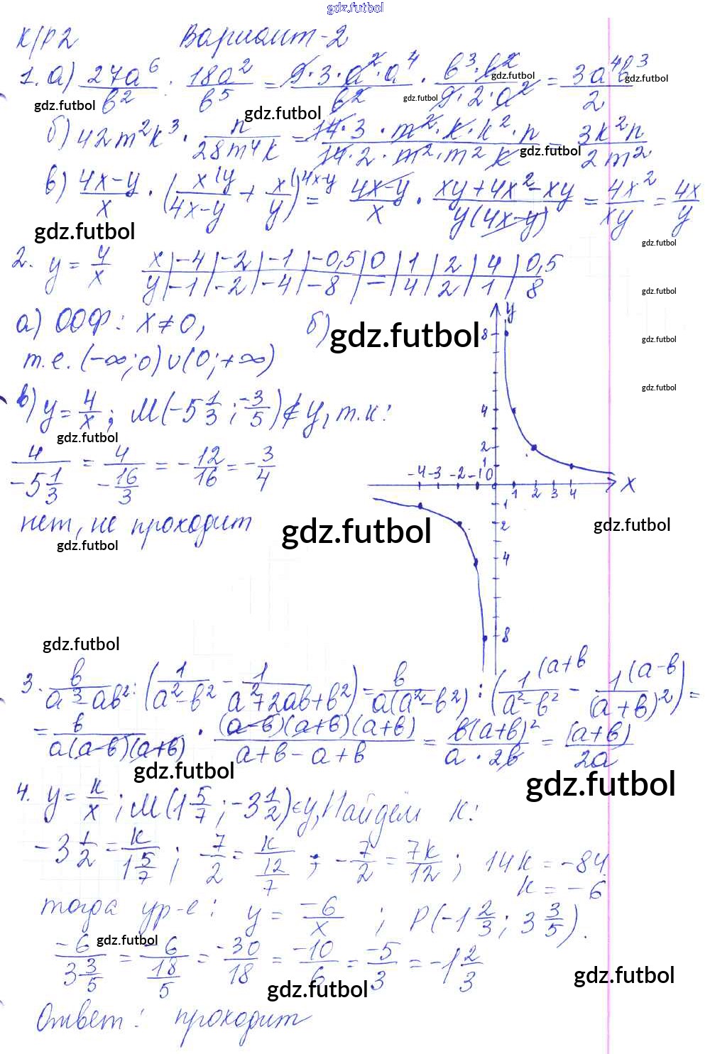 Готовые домашние задания по Алгебре за 8 класс Дудницын Контрольные работы УМК 2010 ФГОС - КР-2. Произведение и частное дробей. Варианты 2