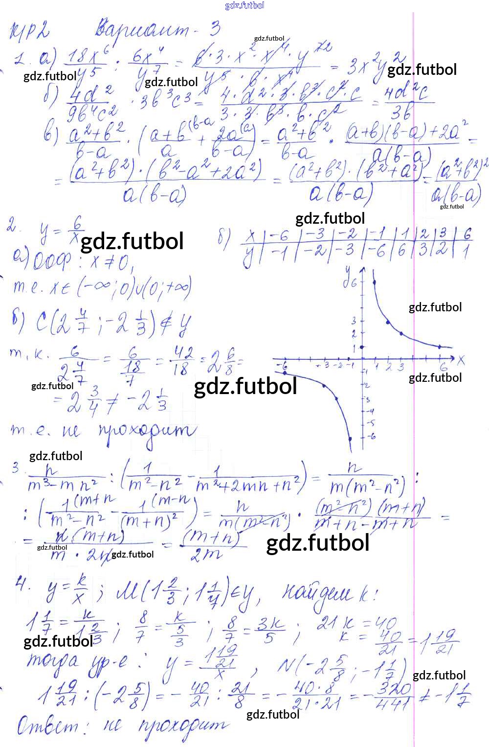 Готовые домашние задания по Алгебре за 8 класс Дудницын Контрольные работы УМК 2010 ФГОС - КР-2. Произведение и частное дробей. Варианты 3