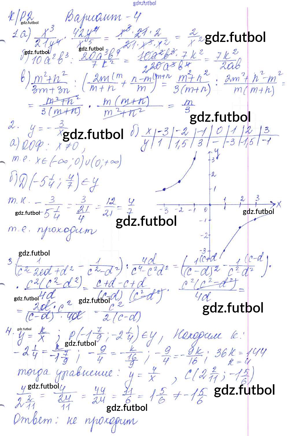 Готовые домашние задания по Алгебре за 8 класс Дудницын Контрольные работы УМК 2010 ФГОС - КР-2. Произведение и частное дробей. Варианты 4
