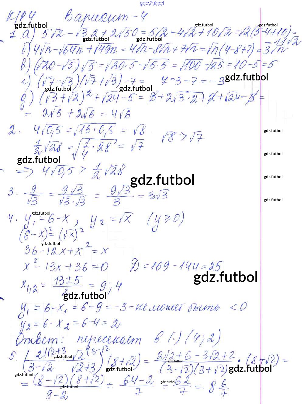 Готовые домашние задания по Алгебре за 8 класс Дудницын Контрольные работы УМК 2010 ФГОС - КР-4. Применение свойств арифметического квадратного корня. Варианты 4