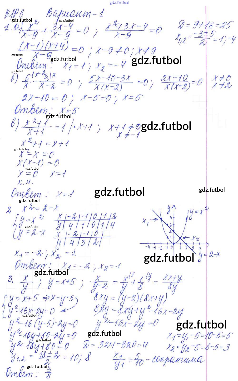 Готовые домашние задания по Алгебре за 8 класс Дудницын Контрольные работы УМК 2010 ФГОС - КР-6. Дробные рациональные уравнения. Варианты 1