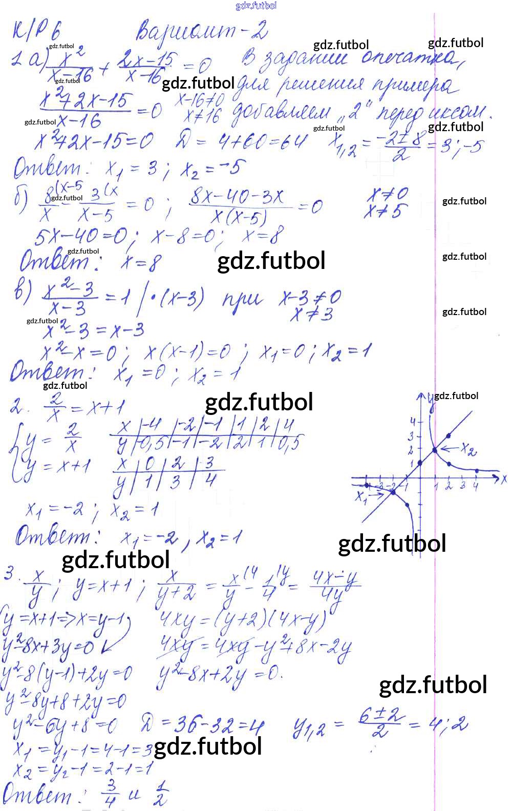 Готовые домашние задания по Алгебре за 8 класс Дудницын Контрольные работы УМК 2010 ФГОС - КР-6. Дробные рациональные уравнения. Варианты 2