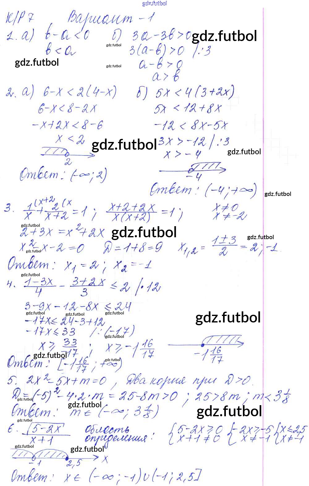 Готовые домашние задания по Алгебре за 8 класс Дудницын Контрольные работы УМК 2010 ФГОС - КР-7. Неравенства с одной переменной. Варианты 1