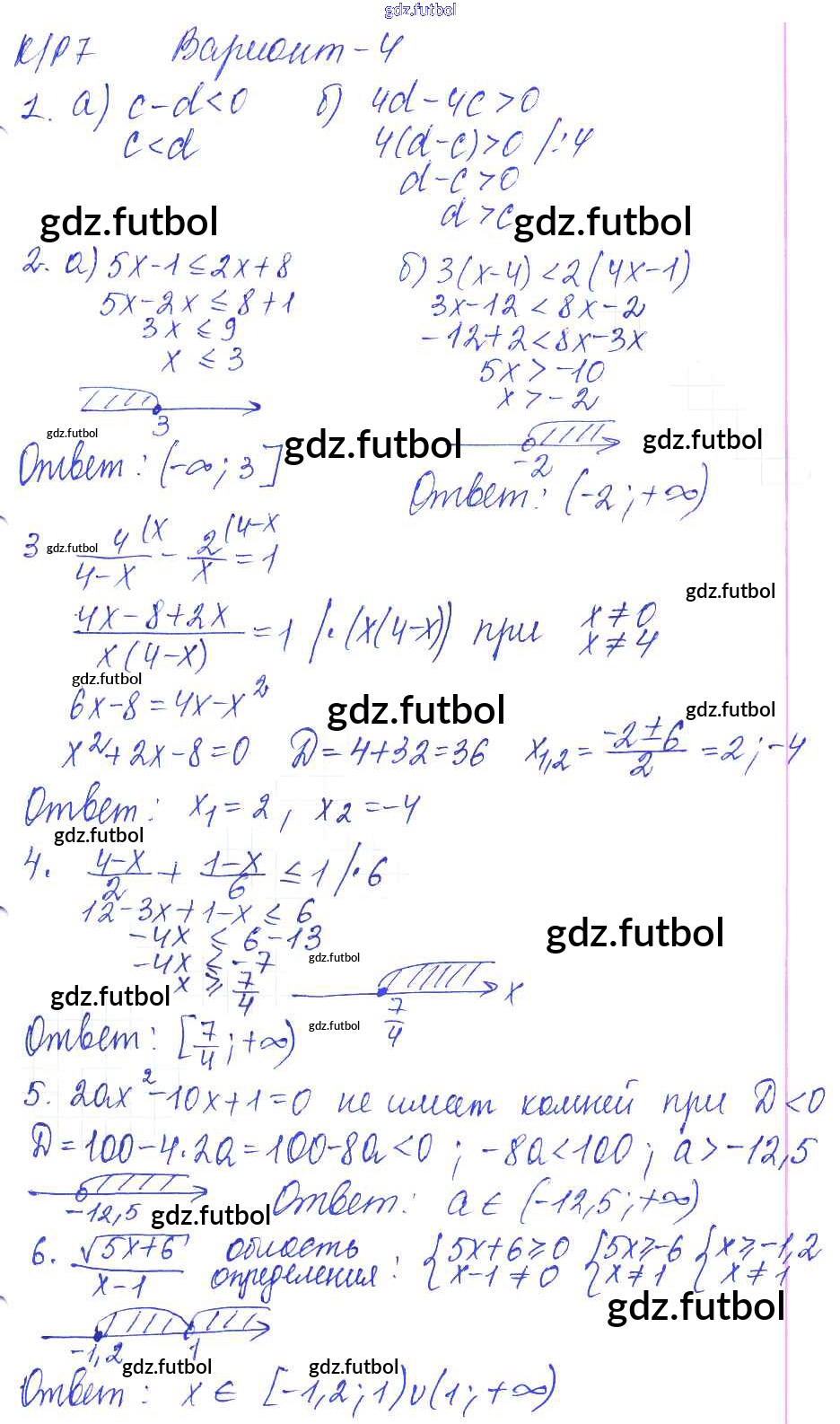 Готовые домашние задания по Алгебре за 8 класс Дудницын Контрольные работы УМК 2010 ФГОС - КР-7. Неравенства с одной переменной. Варианты 4