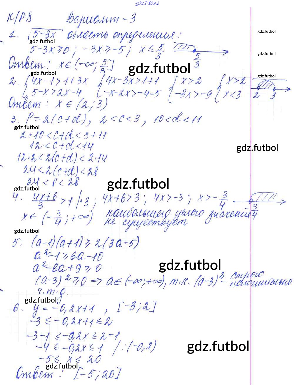 Готовые домашние задания по Алгебре за 8 класс Дудницын Контрольные работы УМК 2010 ФГОС - КР-8. Системы неравенств с одной переменной. Варианты 3