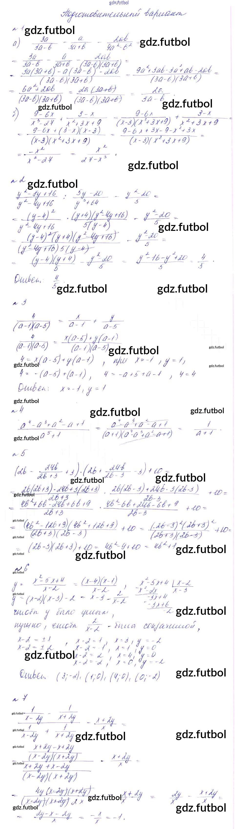 Готовые домашние задания по Алгебре за 8 класс Феоктистов Дидактические материалы 2013 ФГОС - КР-1. Дроби подготовительный вариант