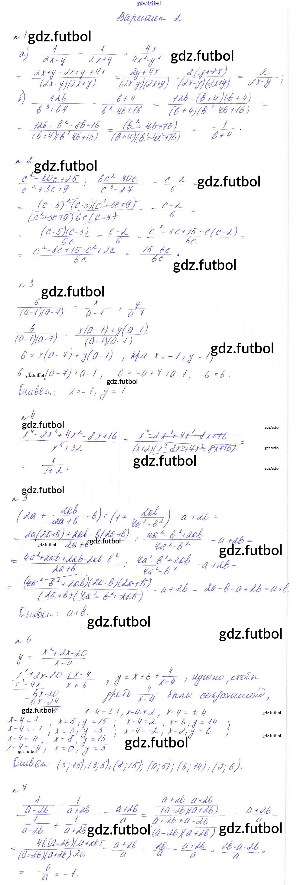 Готовые домашние задания по Алгебре за 8 класс Феоктистов Дидактические материалы 2013 ФГОС - КР-1. Дроби вариант 2