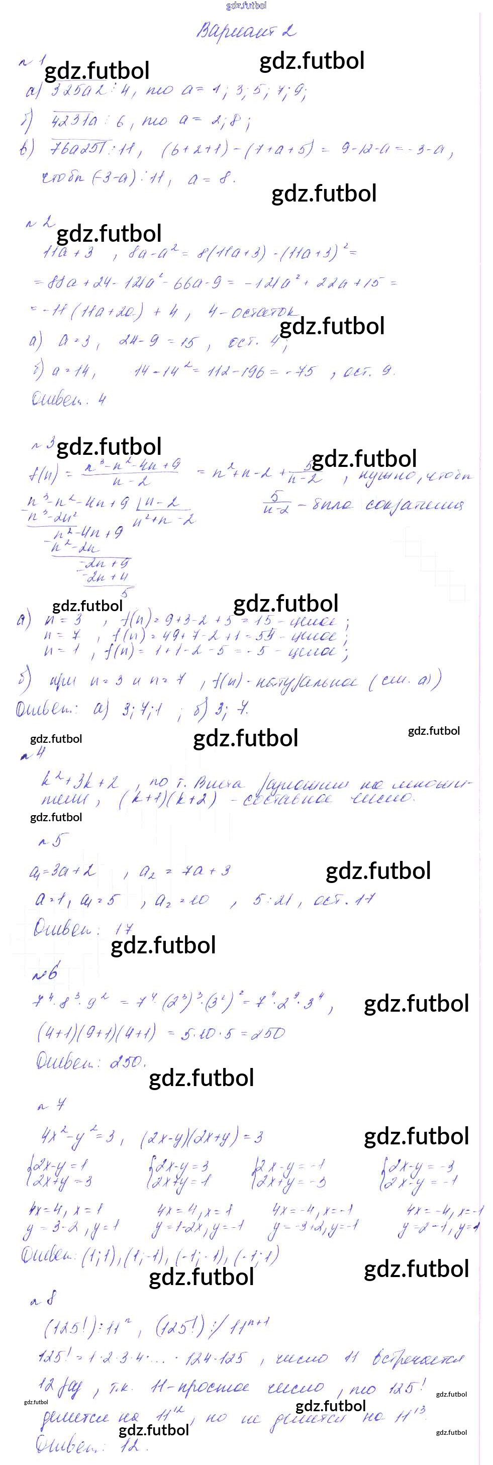 Готовые домашние задания по Алгебре за 8 класс Феоктистов Дидактические материалы 2013 ФГОС - КР-2. Целые числа. Делимость чисел вариант 2
