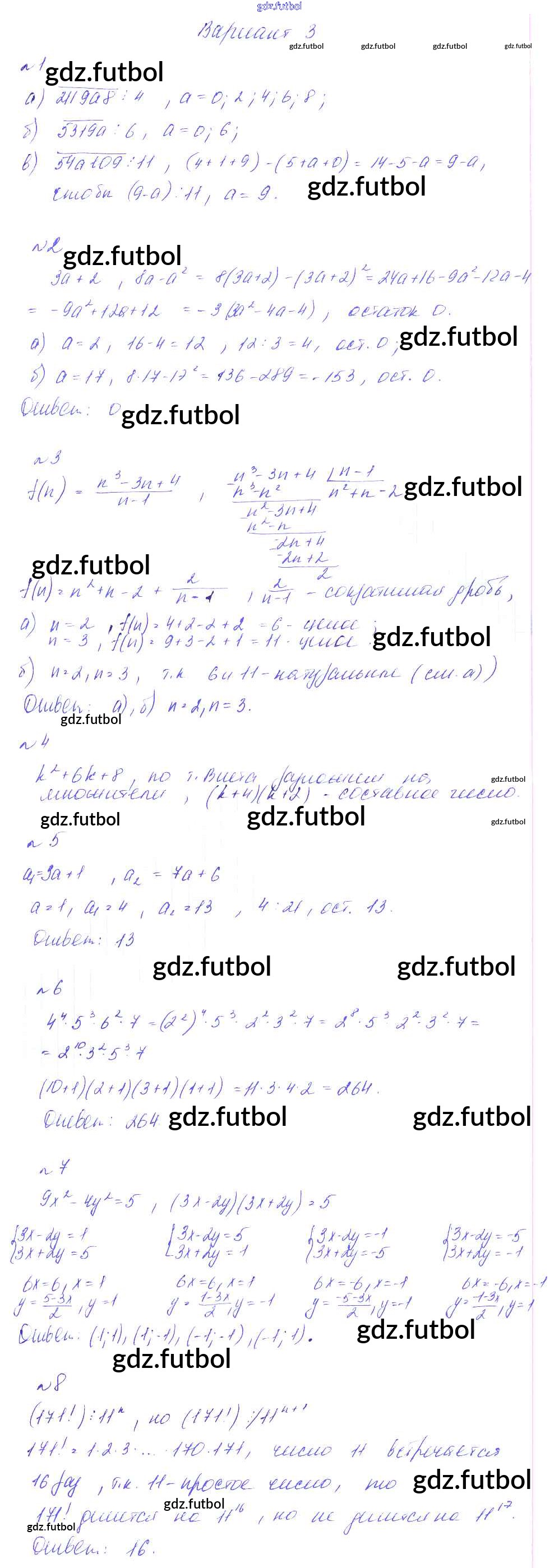 Готовые домашние задания по Алгебре за 8 класс Феоктистов Дидактические материалы 2013 ФГОС - КР-2. Целые числа. Делимость чисел вариант 3