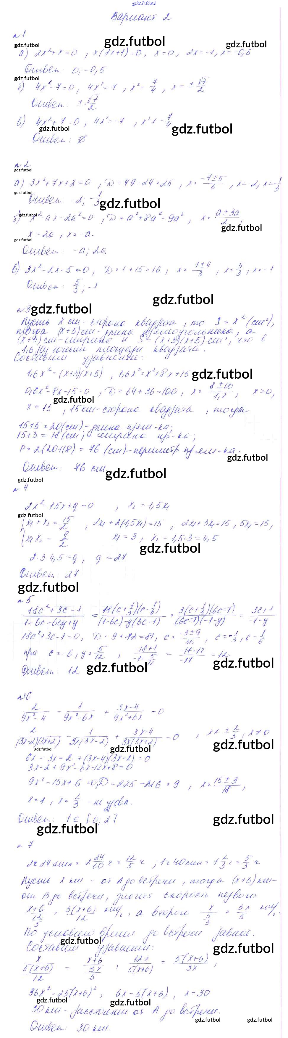 Готовые домашние задания по Алгебре за 8 класс Феоктистов Дидактические материалы 2013 ФГОС - КР-4. Квадратные уравнения вариант 2