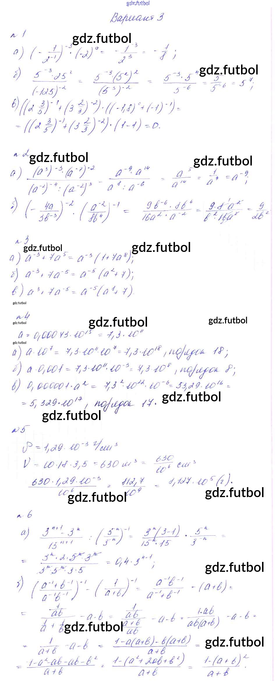 Готовые домашние задания по Алгебре за 8 класс Феоктистов Дидактические материалы 2013 ФГОС - КР-6. Степень с целым показателем вариант 3