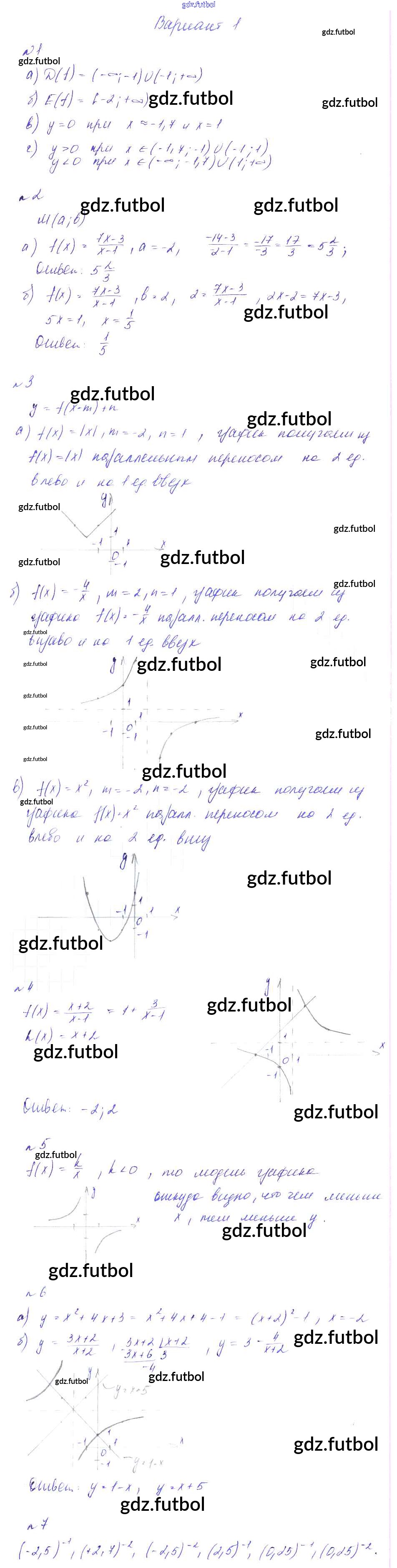 Готовые домашние задания по Алгебре за 8 класс Феоктистов Дидактические материалы 2013 ФГОС - КР-7. Функции и графики вариант 1