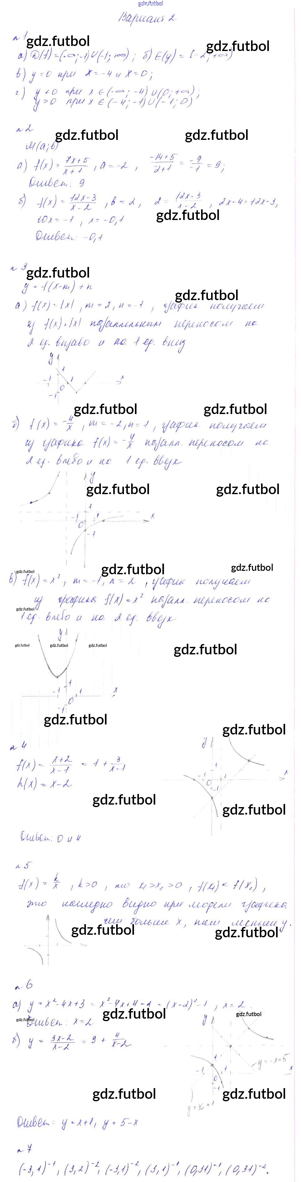 Готовые домашние задания по Алгебре за 8 класс Феоктистов Дидактические материалы 2013 ФГОС - КР-7. Функции и графики вариант 2