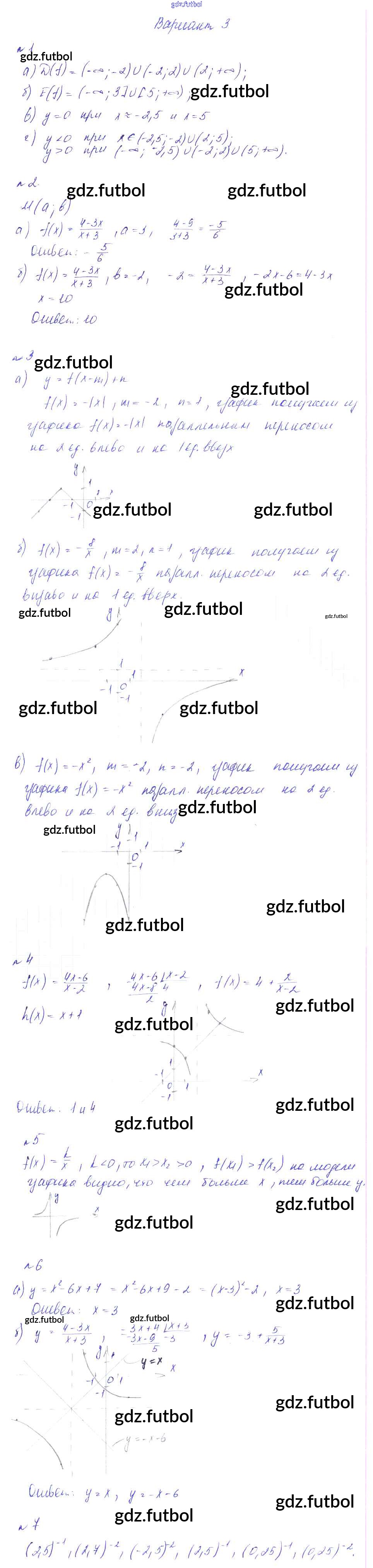 Готовые домашние задания по Алгебре за 8 класс Феоктистов Дидактические материалы 2013 ФГОС - КР-7. Функции и графики вариант 3