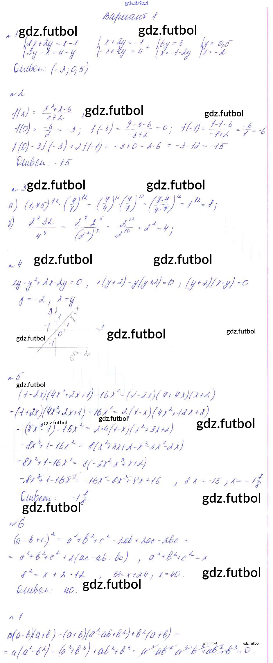 Готовые домашние задания по Алгебре за 8 класс Феоктистов Дидактические материалы 2013 ФГОС - СР-1. Повторение материала 7-го класса вариант 1