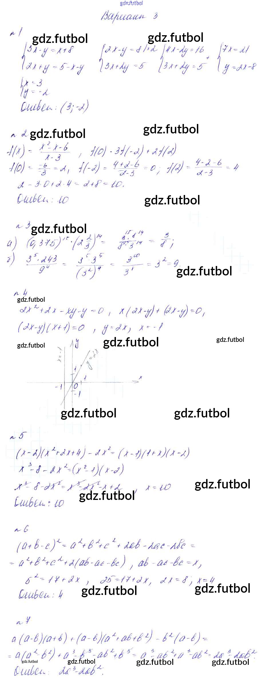 Готовые домашние задания по Алгебре за 8 класс Феоктистов Дидактические материалы 2013 ФГОС - СР-1. Повторение материала 7-го класса вариант 3