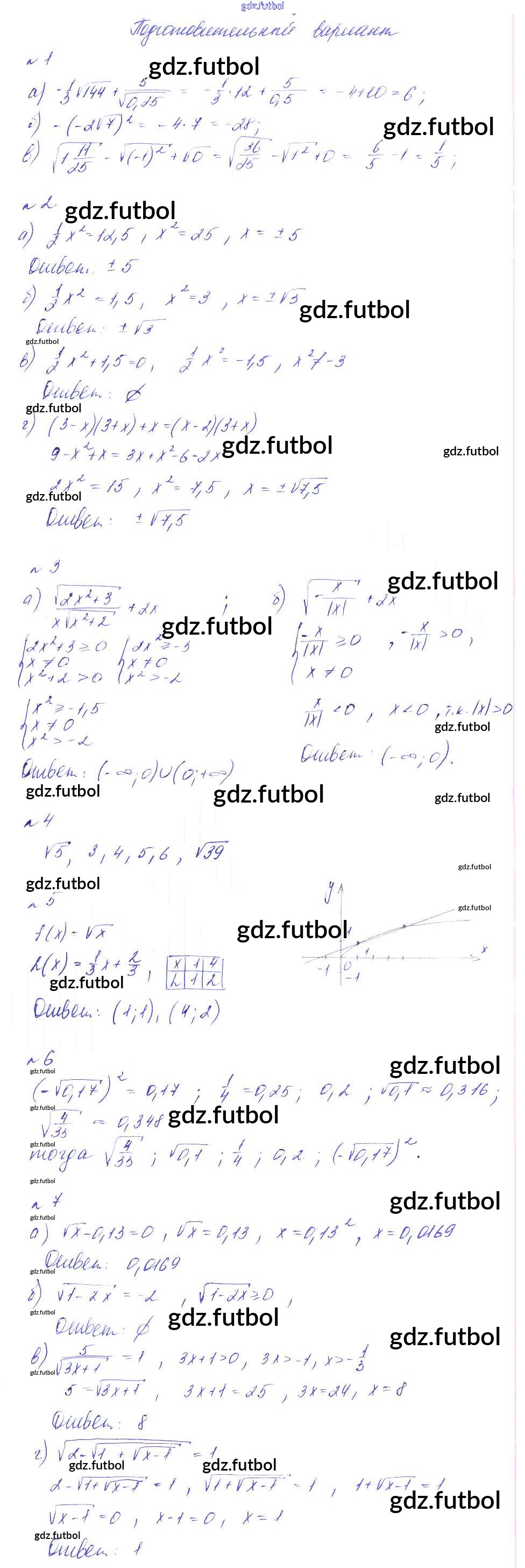 Готовые домашние задания по Алгебре за 8 класс Феоктистов Дидактические материалы 2013 ФГОС - СР-10. Арифметические квадратный корень. Функция y = √x подготовительный вариант