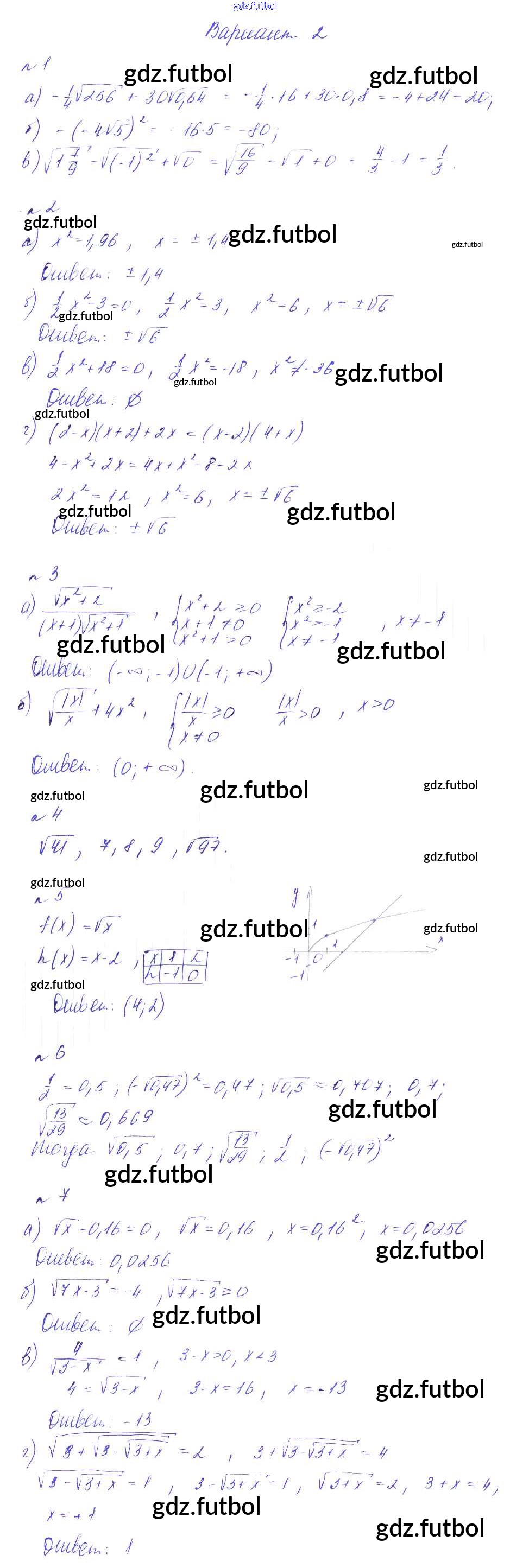 Готовые домашние задания по Алгебре за 8 класс Феоктистов Дидактические материалы 2013 ФГОС - СР-10. Арифметические квадратный корень. Функция y = √x вариант 2