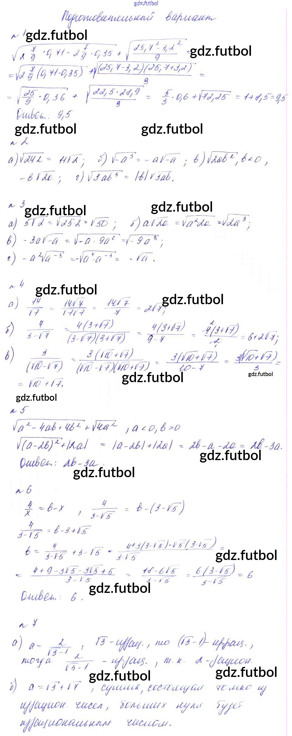 Готовые домашние задания по Алгебре за 8 класс Феоктистов Дидактические материалы 2013 ФГОС - СР-11. Свойства арифметического квадратного корня подготовительный вариант