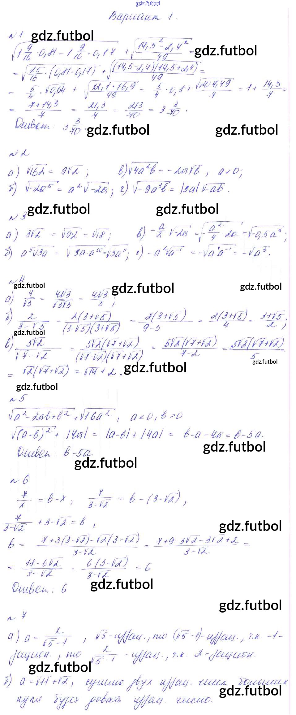 Готовые домашние задания по Алгебре за 8 класс Феоктистов Дидактические материалы 2013 ФГОС - СР-11. Свойства арифметического квадратного корня вариант 1