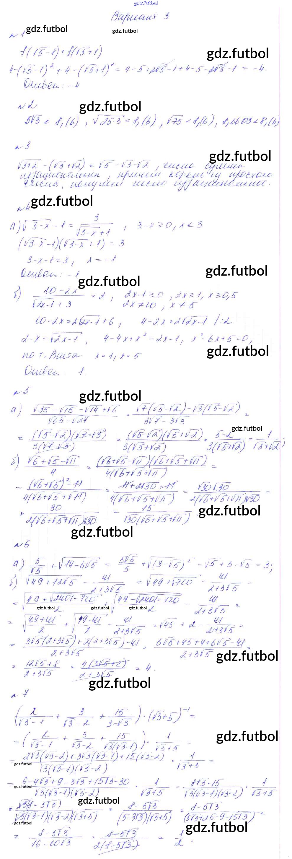 Готовые домашние задания по Алгебре за 8 класс Феоктистов Дидактические материалы 2013 ФГОС - СР-12. Преобразование сложных радикалов вариант 3