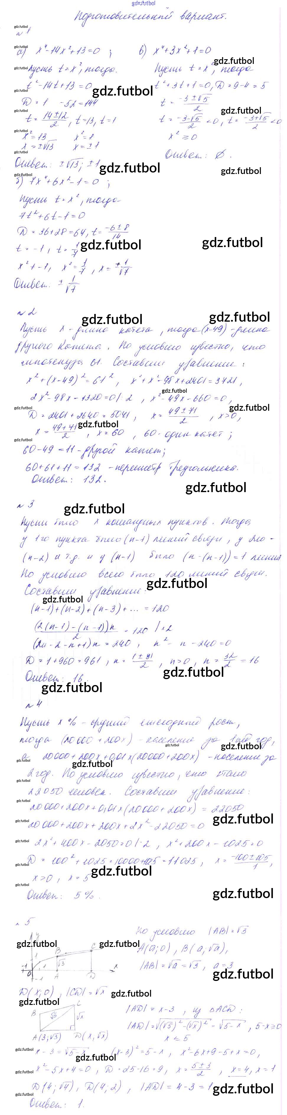Готовые домашние задания по Алгебре за 8 класс Феоктистов Дидактические материалы 2013 ФГОС - СР-14. Биквадратные уравнения. Решение задач с помощью квадратных уравнений подготовительный вариант