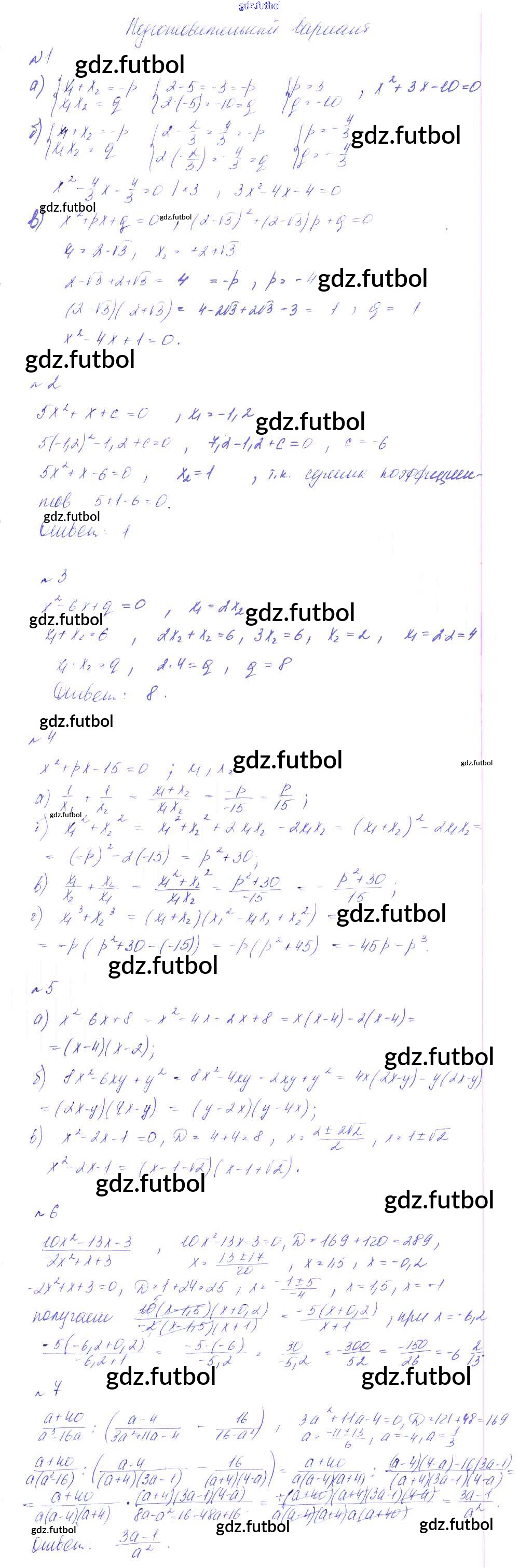 Готовые домашние задания по Алгебре за 8 класс Феоктистов Дидактические материалы 2013 ФГОС - СР-15. Свойство корней квадратного уравнения, симметрические многочлены, разложение квадратного трехчлена на множ подготовительный вариант